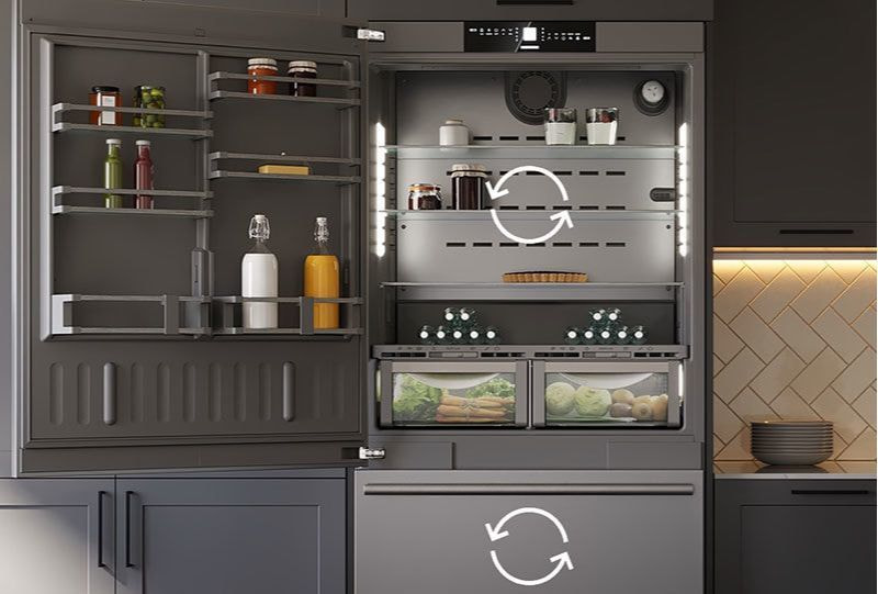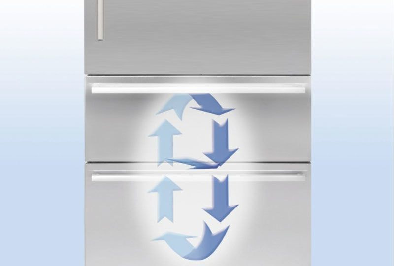 2つの独立した冷却回路が、冷蔵室と冷凍室を正確に温度制御します。冷蔵室と冷凍室との間を空気が循環しないため、臭い移りがなく、保存食品も乾燥しません。