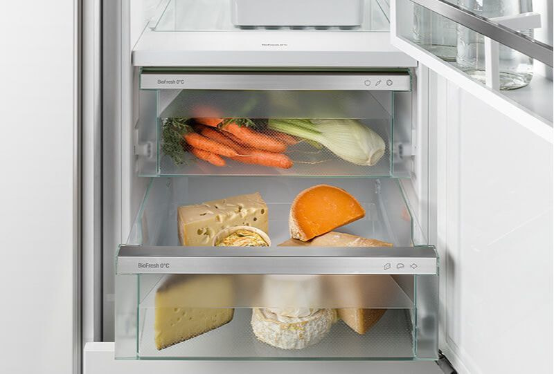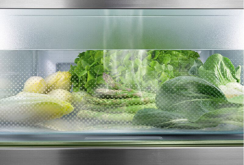 HydroBreezeは、BioFresh上段の庫内で冷却ミストを発生させます。ミストでの保湿と大部分の微生物が活動を停止する、約0℃の保存環境を組み合わせることで、食品の長期保存するための効果を最大化します。HydroBreezeの持続時間は、ユーザーインターフェースで設定できます。ドアを開けるたびに噴霧する時間を8秒、6秒、4秒のいずれかに設定することができます。ドアを閉めた場合は、90分ごとに4秒間、引き出しの中に新鮮なミストが噴霧されます。