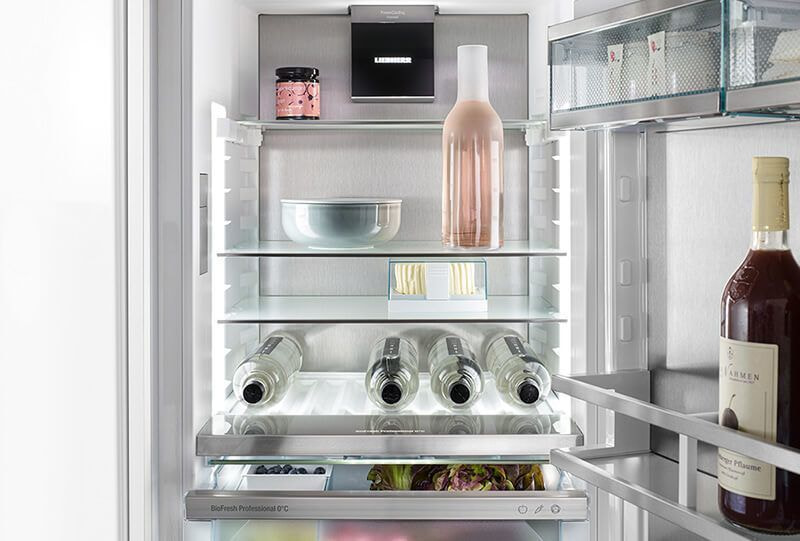 HydroBreezeは、BioFresh上段の庫内で冷却ミストを発生させます。ミストでの保湿と大部分の微生物が活動を停止する、約0℃の保存環境を組み合わせることで、食品の長期保存するための効果を最大化します。HydroBreezeの持続時間は、ユーザーインターフェースで設定できます。ドアを開けるたびに噴霧する時間を8秒、6秒、4秒のいずれかに設定することができます。ドアを閉めた場合は、90分ごとに4秒間、引き出しの中に新鮮なミストが噴霧されます。