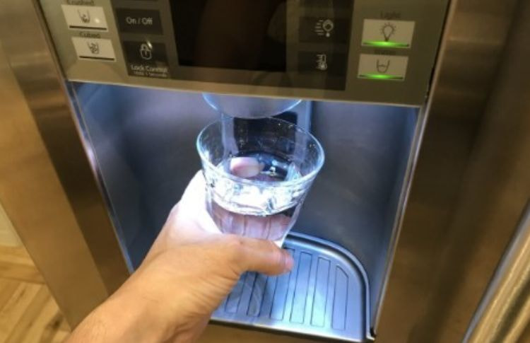 ドアを開けずにワンタッチで氷と水を取り出せるカスタムディスペンサー